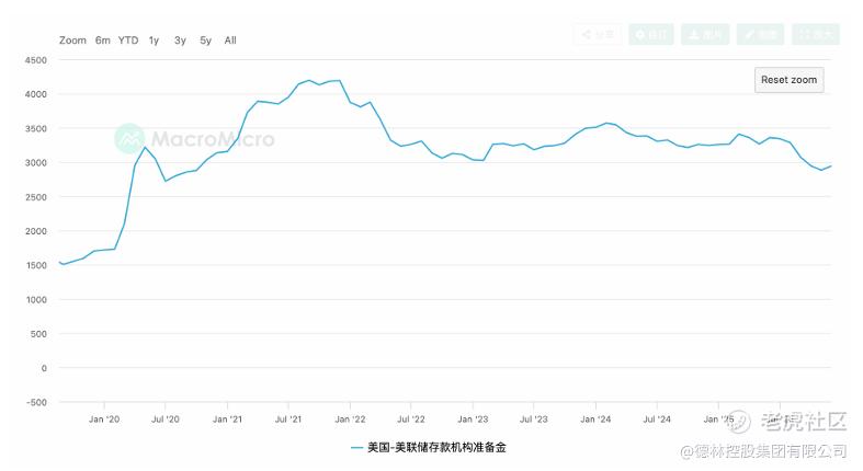 图5:存款准备金率降到0%,准备金额突破4万亿美元,图片来源:MacroMicro