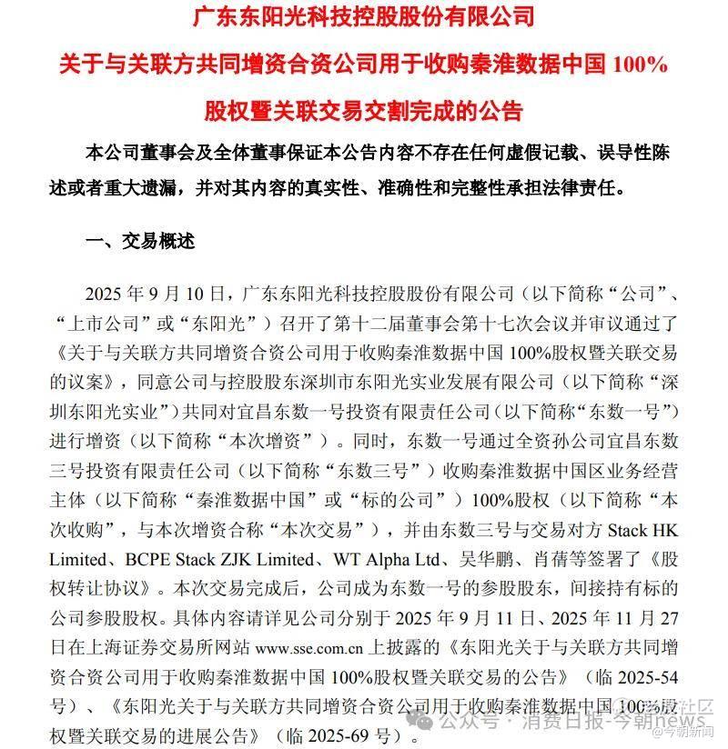 这个手握着800亿资产实业帝国的家族,在38岁的张寓帅接班后,正遭遇一场全新的考验。母亲把股权转让后,儿子把280亿元砸向AI。2025年9月,东阳光集团斥资280亿元收购秦淮数据中国区全部业务。