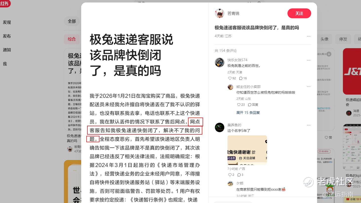 在社交媒体平台小红书上搜索“极兔”,映入眼帘的大部分内容并非对其战略转型的探讨,而是大量用户自发发布的、充满具体细节的消费投诉与不满倾诉。