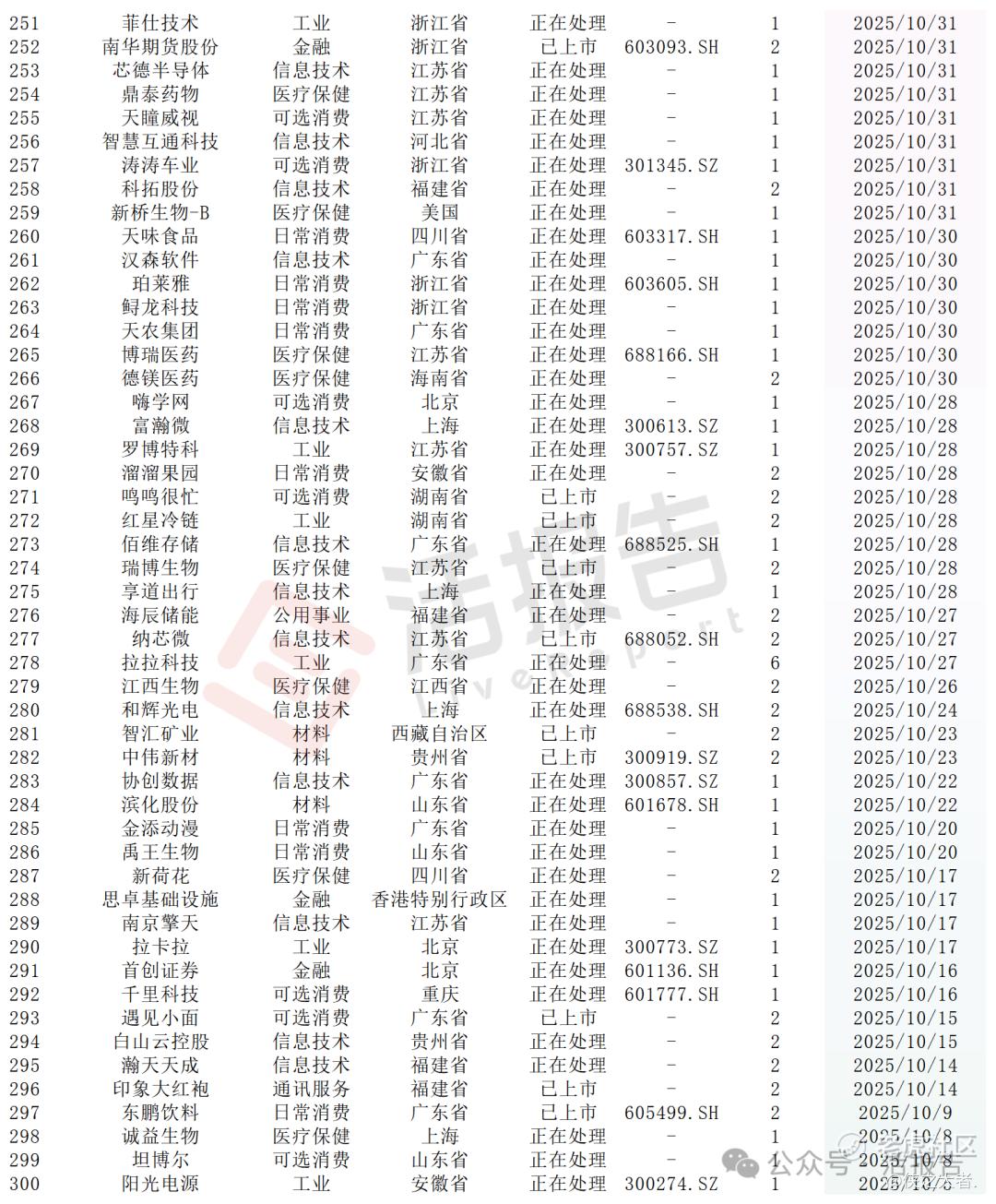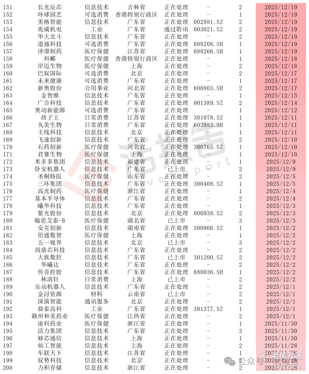 结合递表时间集中于2025年下半年和2026年1月的特征,并参考2025年信息技术与医疗保健行业通过备案的平均审批时长约250天的数据测算,若后续监管审核节奏总体保持稳定,预计很多公司有望在2026年中至2026年第三季度逐步上市。不过,实际上市进度仍受市场环境、监管审批效率及个别公司情况影响,可能存在一定波动。