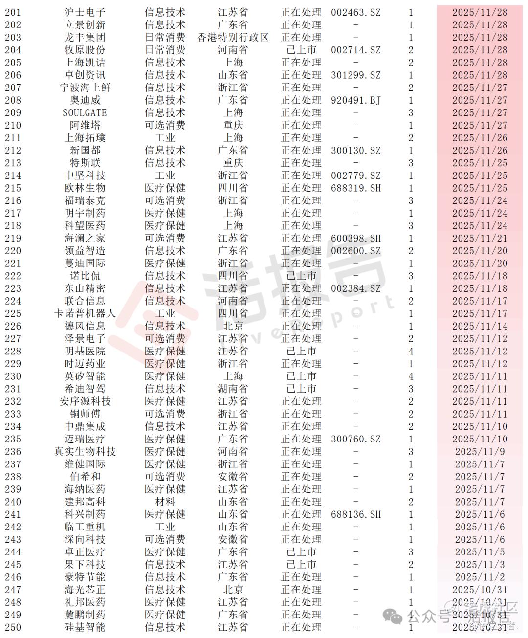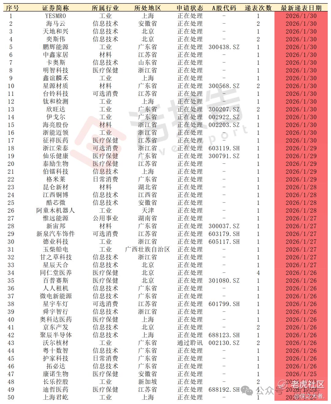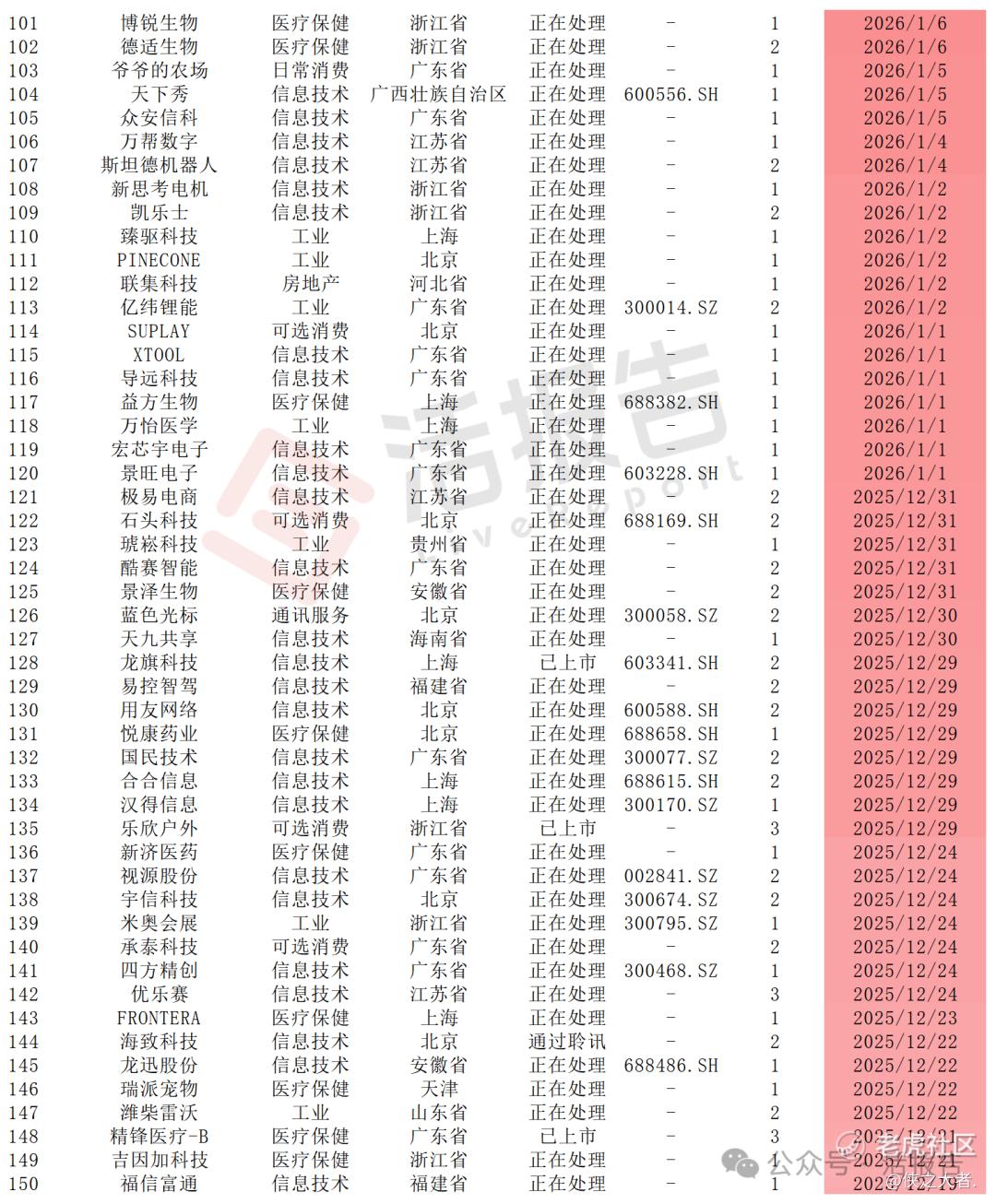 附:2025年至2026年1月递表公司明细
