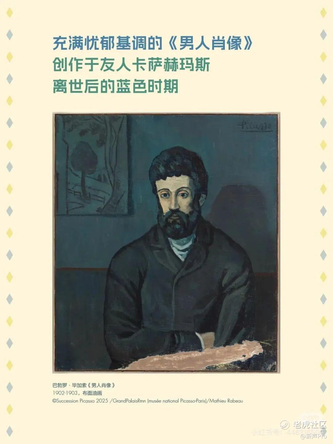 我将手机对准一幅毕加索创作于1902 年的充满忧郁气息的《男人肖像》,并轻声问道:「为什么这幅画被策展人放在了展览的第一位?」