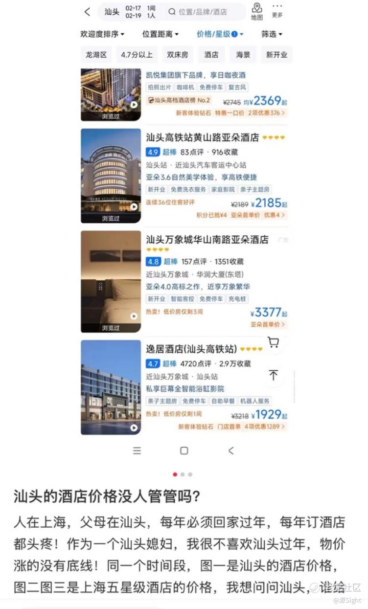 作为春节假期旅游的热门目的地,包括汕头在内的潮汕地区酒店房价确实上涨了不少。