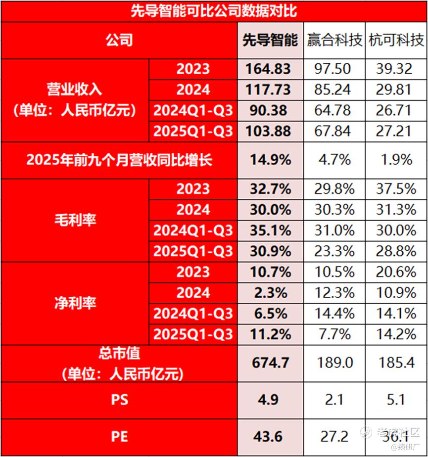 财务方面,先导智能作为全球新能源高端智能装备制造龙头,营收以锂电全线设备销售为核心。受下游锂电行业周期波动影响,2023-2024年营收从164.83亿元回落至117.73亿元,2025年前九个月随行业回暖以及头部客户(如宁德时代)的订单绑定同比增长14.9%至103.88亿元,体现了业绩的韧性;锂电设备行业具有技术壁垒高+周期波动的特点,虽然盈利水平受行业供需影响存在波动,但先导智能凭借全流程布局的规模优势,毛利率在业绩期内始终维持在30%+,高于深耕部分设备线的同业可比公司;净利率受2024年存货及应收账款减值影响大幅降至2.3%,2025年前九个月伴随行业回暖、减值压力缓解回升至11.2%,盈利水平的弹性修复也验证了其龙头业务的抗风险能力。现金流方面,此前受锂电行业下行、设备验收回款周期拉长影响,先导智能经营性现金流短期承压转负,但2025年行业回暖后订单验收加速,经营现金流逐步改善;截至2025年9月30日,公司账上现金47.85亿元,资金储备充足,无明显偿债压力,可支撑其固态电池设备等前沿技术研发与全球化布局的持续推进。
