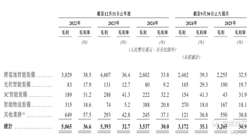 营业收入方面,2022年至2024年,先导智能的收入分别为人民币138.36亿元、164.83亿元、117.73亿元,收入出现明显下滑。主要由于锂电及光伏智能装备的销售收入减少,下游电动汽车电池和储能电池企业产能扩张缓慢,新产能尚待释放;验货周期延长,营收确认进度显著延后;电动汽车市场增长放缓以及2023年起行业政策支持减弱(2022年底中国终止新能源汽车购置补贴政策)。2025年前九个月,收入同比增长14.9%至103.88亿元,主要因下游电动汽车及储能市场复苏,订单量与验收量增加。同时,公司全球化布局成效凸显,海外收入从2022年的11.95亿元增至2025年Q3的20.15 亿元,营收占比提升至近20%,客户覆盖宁德时代、大众、宝马、特斯拉等国际车企及电池厂商,有效对冲了国内市场的下行压力。
