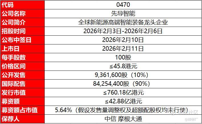 市场情绪层面,先导智能招股时机一般,目前还有爱芯元智和乐欣户外2只新股在招股,今天又有沃尔核材和海致科技开始招股,但上一批卓正、牧原和大族的资金能赶上本轮的末班车。2026年开年以来港股市场情绪回暖,市场申购信心大涨,破发项目较少,整体迎来一波开年红行情。不过上周的东鹏破发可能会对本周的打新热度有一定影响。先导智能作为锂电智能装备赛道的全球龙头,短期确定性较强,未来随着固态电池业务的拓展及百亿元新增订单逐渐落地,有望延续业绩增长态势。截至发稿时间先导智能已超购于7.16倍,感兴趣的投资者可以持续关注后续几天认购情况。