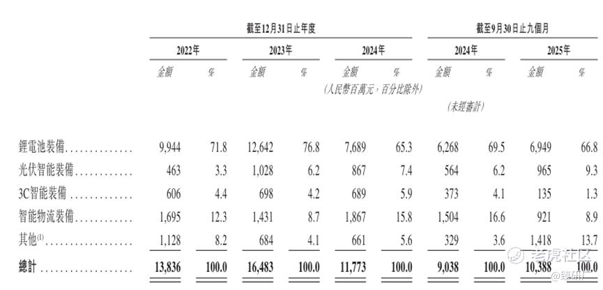 主要的财务数据对比如图,先导智能的营收规模处于行业领先水平,2025年前九个月的同比增速也较快。主要因为先导智能是实现锂电池赛道整线设备全覆盖的龙头企业,业务规模决定了营收基数会更高。且公司深度绑定宁德时代等头部客户,2025年锂电行业回暖后,新/续签的大额订单进一步放大了营收弹性。具体来看,赢合科技在锂电前中道设备赛道深耕,以锂电池前道涂布机为核心,逐步拓展至锂电池整线智能装备,同时布局电子烟设备、光伏设备等业务,收入结构多样化;杭可科技则聚焦后道设备赛道,专注后道充放电、内阻测试、分容设备,不涉及前中段环节。收入来源相对单一,但是海外占比较高,是细分赛道内的全球龙头。