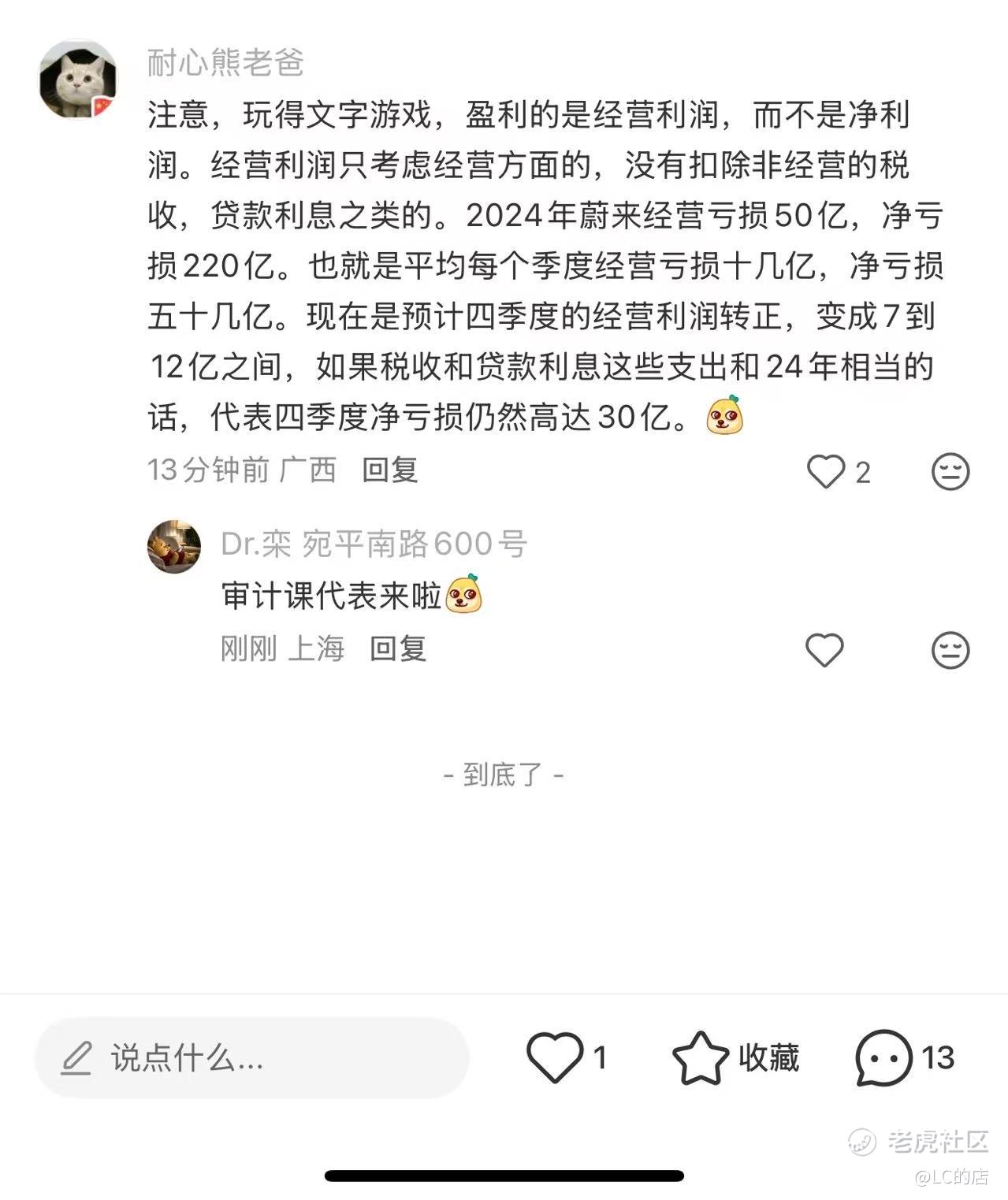 {"i18n":{"language":"zh_CN"},"data":{"magic":2,"id":529535274766480,"tweetId":"529535274766480","gmtCreate":1770301955630,"gmtModify":1770301958210,"author":{"id":58237739306760,"idStr":"58237739306760","authorId":58237739306760,"authorIdStr":"58237739306760","name":"LC的店","avatar":"https://static.tigerbbs.com/b562fd061f1f595ec8e462db719dd89b","vip":1,"userType":1,"introduction":"","boolIsFan":false,"boolIsHead":false,"crmLevel":2,"crmLevelSwitch":0,"individualDisplayBadges":[],"fanSize":3,"starInvestorFlag":false},"themes":[],"images":[{"img":"https://static.tigerbbs.com/2b2c9cf6f5754aada95c75071556369f","width":"1279","height":"1523"}],"coverImages":[{"img":"https://static.tigerbbs.com/2b2c9cf6f5754aada95c75071556369f","width":"1279","height":"1523"}],"title":"","html":"<html><head></head><body><a href=\"https://laohu8.com/S/NIO\">$蔚来(NIO)$ </a> 有点东西<img src=\"https://static.tigerbbs.com/2b2c9cf6f5754aada95c75071556369f\" tg-width=\"1279\" tg-height=\"1523\"></body></html>","htmlText":"<html><head></head><body><a href=\"https://laohu8.com/S/NIO\">$蔚来(NIO)$ </a> 有点东西<img src=\"https://static.tigerbbs.com/2b2c9cf6f5754aada95c75071556369f\" tg-width=\"1279\" tg-height=\"1523\"></body></html>","text":"$蔚来(NIO)$ 有点东西","highlighted":1,"essential":1,"paper":1,"likeSize":3,"commentSize":8,"repostSize":0,"favoriteSize":0,"link":"https://laohu8.com/post/529535274766480","repostId":0,"isVote":1,"tweetType":1,"viewCount":2291,"commentLimit":10,"likeStatus":false,"favoriteStatus":false,"reportStatus":false,"symbols":["NIO","09866"],"verified":2,"subType":0,"readableState":1,"langContent":"CN","currentLanguage":"CN","warmUpFlag":false,"orderFlag":false,"shareable":true,"causeOfNotShareable":"","featuresForAnalytics":[],"commentAndTweetFlag":false,"andRepostAutoSelectedFlag":false,"upFlag":false,"length":19,"optionInvolvedFlag":false,"xxTargetLangEnum":"ZH_CN"},"commentList":[{"id":529536817714760,"commentId":"529536817714760","gmtCreate":1770302414128,"gmtModify":1770303169303,"authorId":3572923745096038,"author":{"id":3572923745096038,"idStr":"3572923745096038","authorId":3572923745096038,"name":"艾利克","avatar":"https://static.tigerbbs.com/38c157f119503362ec91004ee318384c","vip":1,"currentWearingBadge":{"badgeId":"518b5610c3e8410da5cfad115e4b0f5a-1","templateUuid":"518b5610c3e8410da5cfad115e4b0f5a","name":"实盘交易者","description":"完成一笔实盘交易","bigImgUrl":"https://static.tigerbbs.com/2e08a1cc2087a1de93402c2c290fa65b","smallImgUrl":"https://static.tigerbbs.com/4504a6397ce1137932d56e5f4ce27166","grayImgUrl":"https://static.tigerbbs.com/4b22c79415b4cd6e3d8ebc4a0fa32604","redirectLinkEnabled":0,"hasAllocated":1,"isWearing":1,"stampPosition":0,"hasStamp":0,"allocationCount":1,"allocatedDate":"2024.09.25","individualDisplayEnabled":0,"individualDisplaySort":0,"categoryType":1100},"crmLevel":5,"crmLevelSwitch":0,"individualDisplayBadges":[]},"repliedAuthorId":0,"objectId":529535274766480,"objectIdStr":"529535274766480","type":1,"supId":0,"supIdStr":"0","prevId":0,"prevIdStr":"0","content":"瞎扯的你也信[开心]","text":"瞎扯的你也信[开心]","html":"瞎扯的你也信[开心]","likeSize":0,"commentSize":1,"subComments":[{"id":529539939878056,"commentId":"529539939878056","gmtCreate":1770303207622,"gmtModify":1770303212960,"authorId":58237739306760,"author":{"id":58237739306760,"idStr":"58237739306760","authorId":58237739306760,"name":"LC的店","avatar":"https://static.tigerbbs.com/b562fd061f1f595ec8e462db719dd89b","vip":1,"crmLevel":2,"crmLevelSwitch":0,"individualDisplayBadges":[]},"repliedAuthorId":0,"objectId":529535274766480,"objectIdStr":"529535274766480","type":1,"supId":529536817714760,"supIdStr":"529536817714760","prevId":0,"prevIdStr":"0","content":"全仓干了","text":"全仓干了","html":"全仓干了","disclaimerType":0}],"verified":10,"allocateAmount":0,"commentType":"hot","coins":0,"score":0,"disclaimerType":0},{"id":529558552937640,"commentId":"529558552937640","gmtCreate":1770307751811,"gmtModify":1770307756246,"authorId":3561649565466203,"author":{"id":3561649565466203,"idStr":"3561649565466203","authorId":3561649565466203,"name":"Huan娱","avatar":"https://static.tigerbbs.com/f1f0e6d86680b202c05ed56a4c11e9bb","vip":1,"crmLevel":2,"crmLevelSwitch":0,"individualDisplayBadges":[]},"repliedAuthorId":0,"objectId":529535274766480,"objectIdStr":"529535274766480","type":1,"supId":0,"supIdStr":"0","prevId":0,"prevIdStr":"0","content":"其实这些都不重要。就看“主力”想不想拉盘了","text":"其实这些都不重要。就看“主力”想不想拉盘了","html":"其实这些都不重要。就看“主力”想不想拉盘了","likeSize":2,"commentSize":1,"subComments":[{"id":529773068828824,"commentId":"529773068828824","gmtCreate":1770360097524,"gmtModify":1770360102730,"authorId":3457517955991377,"author":{"id":3457517955991377,"idStr":"3457517955991377","authorId":3457517955991377,"name":"只买信仰股","avatar":"https://static.tigerbbs.com/6ee74a010c0dd3e10097f3ecd2b5a827","vip":1,"crmLevel":7,"crmLevelSwitch":0,"individualDisplayBadges":[]},"repliedAuthorId":0,"objectId":529535274766480,"objectIdStr":"529535274766480","type":1,"supId":529558552937640,"supIdStr":"529558552937640","prevId":0,"prevIdStr":"0","content":"一季度财报差 主力会提前砸盘的","text":"一季度财报差 主力会提前砸盘的","html":"一季度财报差 主力会提前砸盘的","disclaimerType":0}],"verified":10,"allocateAmount":0,"commentType":"valid","coins":0,"score":0,"disclaimerType":0},{"id":529546315277480,"commentId":"529546315277480","gmtCreate":1770304764102,"gmtModify":1770304769065,"authorId":3505824408416415,"author":{"id":3505824408416415,"idStr":"3505824408416415","authorId":3505824408416415,"name":"茶里满果","avatar":"https://static.tigerbbs.com/128c0d751bb1d905eaef8bfa08162929","vip":1,"crmLevel":2,"crmLevelSwitch":0,"individualDisplayBadges":[]},"repliedAuthorId":0,"objectId":529535274766