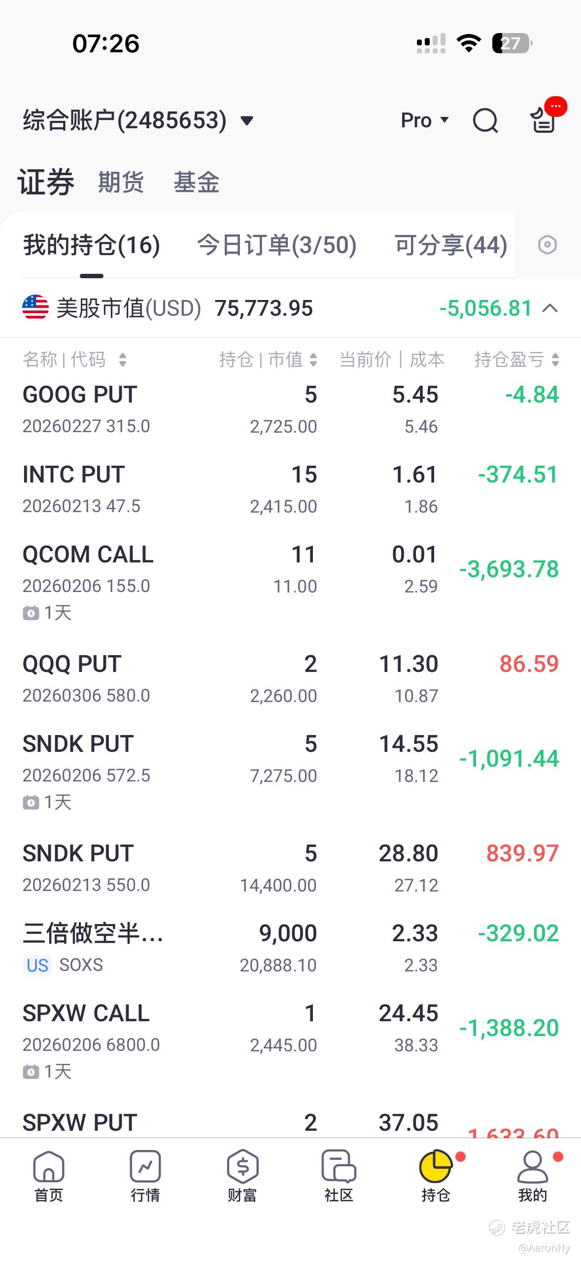 这周amd、goog和amzn,我分别买了周内到期的call+put,属于是对冲后盈利。tsla、sndk的call和qqq的put是看了你的建议入的,最后属于不亏不赚,但真的有学习到很多~
