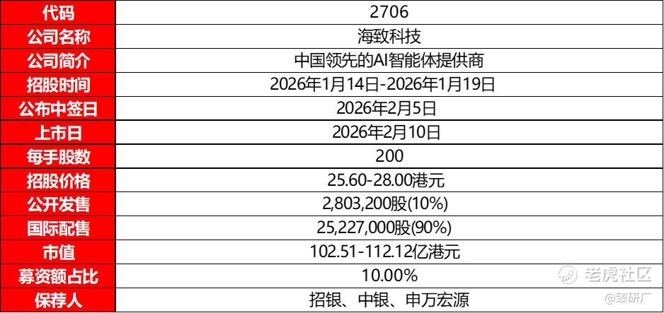 市场情绪层面,海致科技招股时点刚好选在上一批新股密集期结尾,招股时间又比较长,资金均可衔接本轮认购,仅今日与海致科技同步启动招股的沃尔核材与其冲突。2026 年开年以来港股打新情绪回暖,申购信心提升,整体延续开年红行情。海致科技作为产业级 AI “除幻” 标的,卡位图模融合与智能体赛道,叠加智谱、北京国资等基石背书,短期题材辨识度与资金认可度具备支撑;后续随 AI 智能体业务放量、毛利率持续改善,业绩韧性有望逐步兑现。截至2月6日10:00,海致科技公配孖展倍数超购34.68倍,预计申购澜起等项目的资金解冻后,海之科技的孖展倍数将有所提升,感兴趣的投资者可持续关注后续孖展动态。