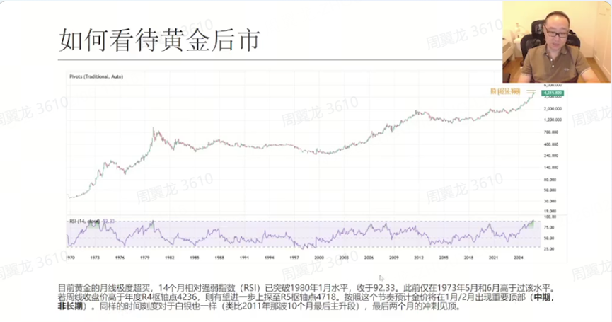 对金价节奏,他回顾自己 12 月的公开判断:已提前预判“金价将在 1 月、2 月出现重要顶部(中期、非长期)”,当前黄金进入“震荡模式”,反弹到下跌幅度的 50% 附近后,后续需要“震荡盘整之后再决定方向”。