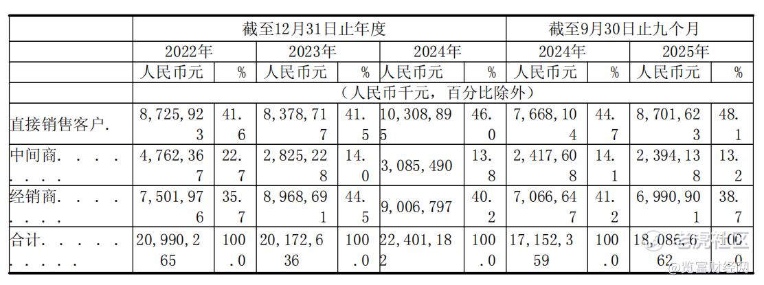 2022年,公司最大经销商占经销商总收入的5.9%,前五大经销商合计贡献11.1%。而截至2025年9月30日,最大经销商占经销商总收入已高达20.6%,前五大经销商合计占30.0%。