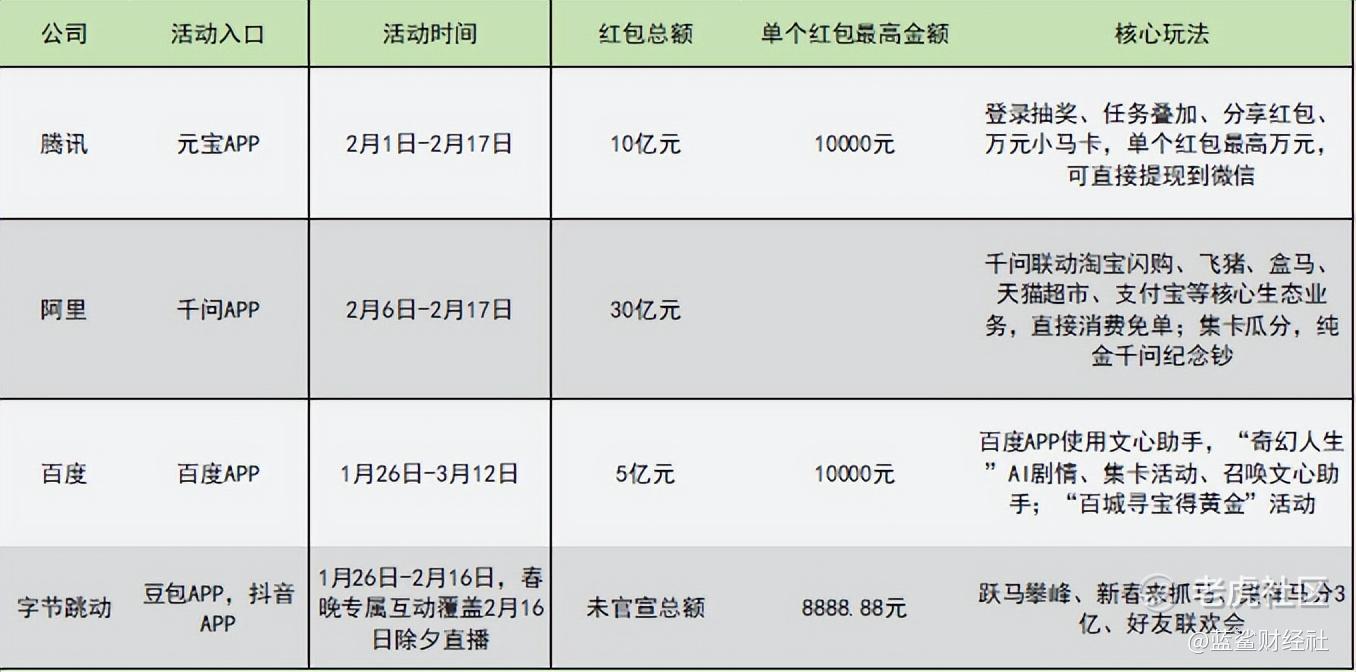 “BATZ”四家巨头狂撒近50亿,试图通过春节这个地球上最大规模的流量洪峰,让自家AI真正成为 “国民级AI应用”。这背后,不仅是资金的投入和流量的博弈,更是AI技术、生态协同、组织能力与战略耐力的全方位比拼。