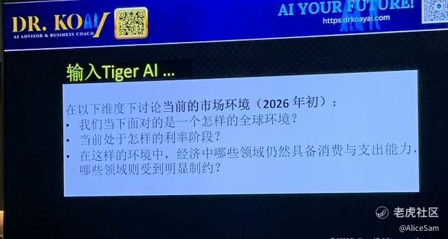 她的第一层就是做一个市场环境扫描,让我们输入Tiger AI,从以下维度讨论当前的市场环境(2026年初):