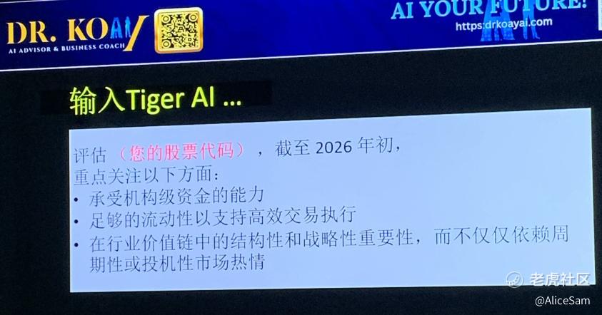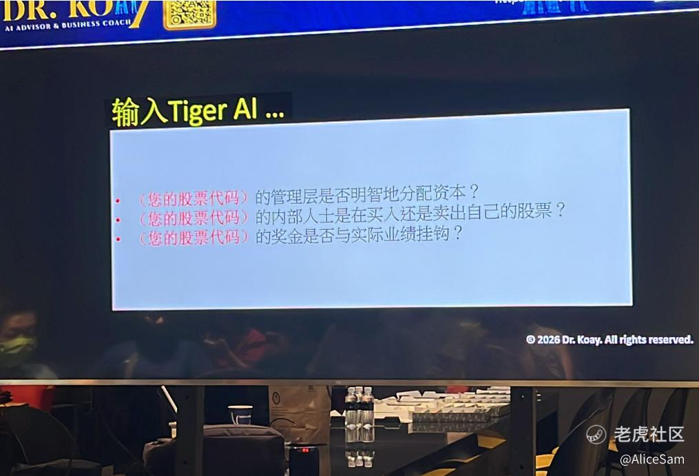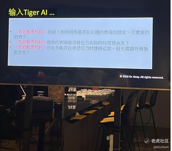 第三,AI时代的竞争优势。 当信息获取日益民主化,真正的竞争优势不在于知道更多,而在于思考更深、纪律更强。Tiger AI等工具降低了信息门槛,但无法替代独立判断与情绪控制。未来的投资竞争,将是"人机结合"能力的竞争。AI的价值在于,它让这一经典理念的实践变得更加系统、高效、可验证。Tiger AI不是要取代我们自己的判断,而是要解放我们去搜寻资料,整理资料的时间,使我们能够聚焦于真正重要的决策,哪些是值得长期拥有的好生意,哪些我们可以真的去花钱投资。