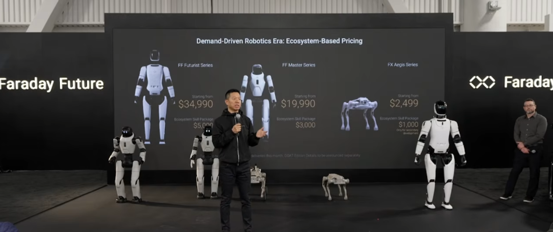 没有过多冗余的铺垫,FF直接亮出硬实力——全球首发Futurist、Master、Aegis三大系列EAI机器人,轮臂系列则敲定今年第二季度登场。这四款产品各有侧重,精准覆盖不同场景,跳出了“为科技而科技”的怪圈,直指实用价值。