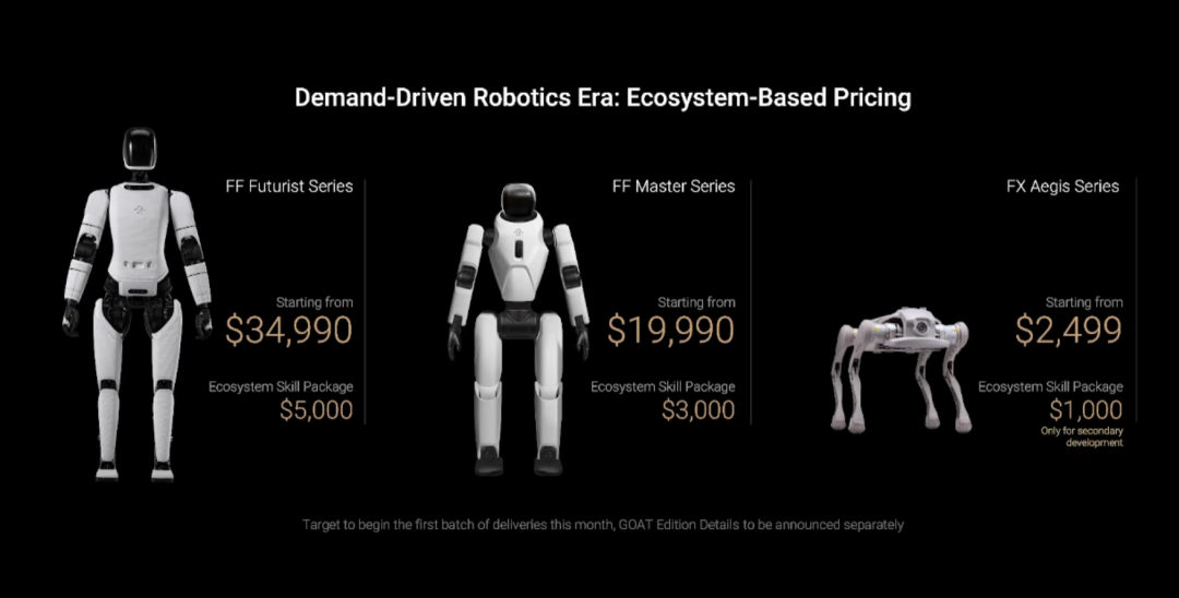 所谓“633行业应用价值”,即机器人可覆盖6大商业公共服务场景、3大家庭服务场景和3大工业服务场景:既是商业领域的接待官、舞台主理人,也是家庭中的智能管家、户外助手,更是工业场景里的柔性制造专家、零缺陷质检官,真正实现“全场景赋能”。而独创的“终端+生态技能包”价格体系,让用户可按需选择——Futurist系列终端起售价34990美元,Master系列19990美元,搭配不同价位的生态技能包,兼顾专业性与灵活性,每款产品还将推出塔尖人群定制的GOAT版,满足多元需求。