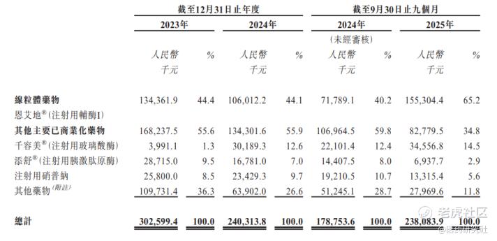 最明显的一个风险点就是“单品依赖”。据招股书,2023、2024年以及2025年前三季度,康诺生物销售恩艾地®的收益分别占同期总收入的44.4%、44.1%及65.2%,其他品类的贡献则比较微薄。虽然该药凭差异化定位,拥有一定市场竞争力,但未来前景不算特别敞亮。
