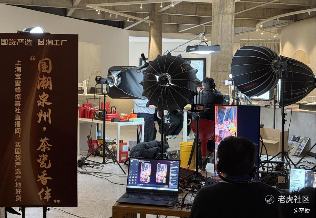 穿越进镜头内,我们在现场看到,直播正在福建泉州德化县龙鹏艺术馆进行,这是当地有名的陶瓷艺术馆。