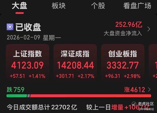 总体来看,今日A股的强势上涨,是科技产业趋势、产品价格周期与节前流动性改善三重逻辑共振的结果。市场热点虽轮动较快,但主线清晰——即围绕AI技术迭代、先进制造升级与全球能源转型展开。在成交放量、个股普涨的背景下,春季躁动行情有望延续,投资者可继续聚焦高景气成长板块与具备基本面支撑的周期方向。