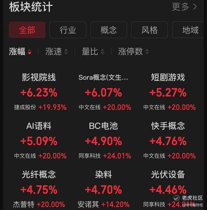 从盘面来看,短期大盘趋势较强,市场赚钱效应不错,下跌家数不足1000,成交额虽然比起前一日有所放量,但是增量资金入场并不明显,值得注意的是,影院院线、文生视频、短剧游戏等板块表现较好,具体来看:
