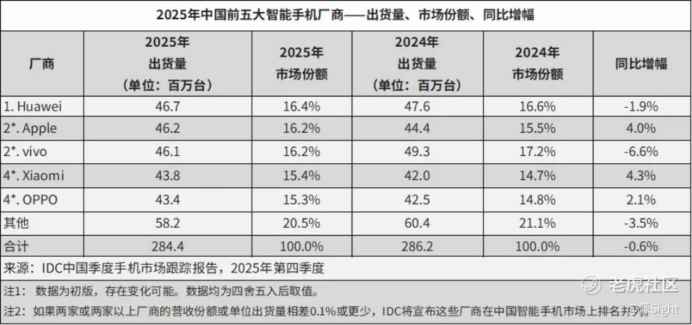 差不多在五年前,**智能手机的市场份额一度降到冰点。到了2025年,这个数字在国内变成了17%。种种迹象表明,至少在国内市场,**已经突破了此前被“卡脖子”的困境,正努力回到高点。
