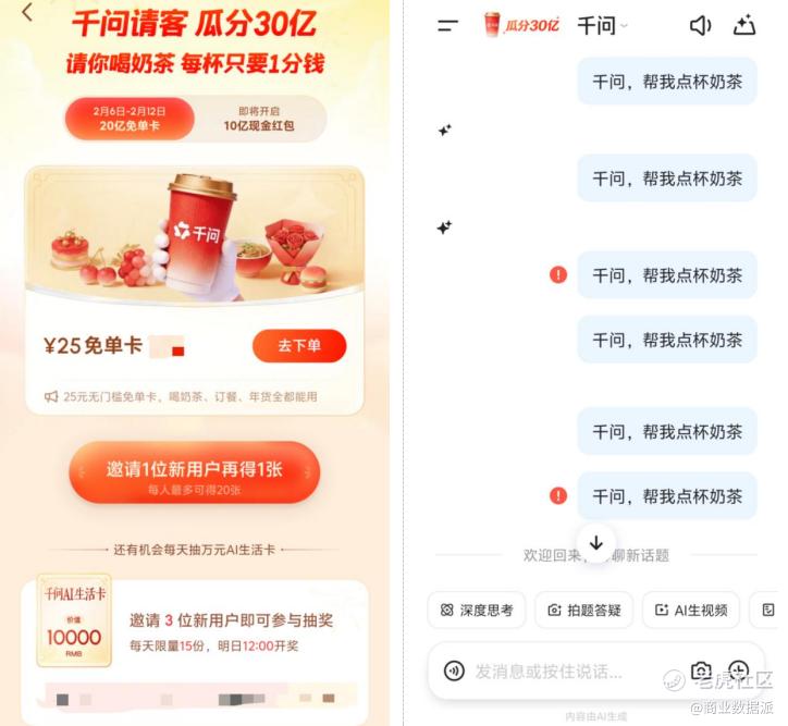 而技术的掉链子,则往往比惯性更致命。2月6日,“1分钱奶茶”活动瞬时流量超出系统承载,卡顿随之出现——一次本用于加速用户教育的运营动作,反而短暂冲击了履约体验。对于仍处在习惯建立期的即时零售而言,这类波动本身就是成本。