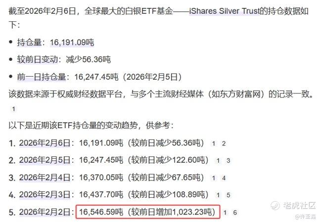另一方面,随着价格暴跌,散户投资者在截至上周四的六个交易日内,向最大的白银交易所交易基金SLV注入了4.3亿美元。