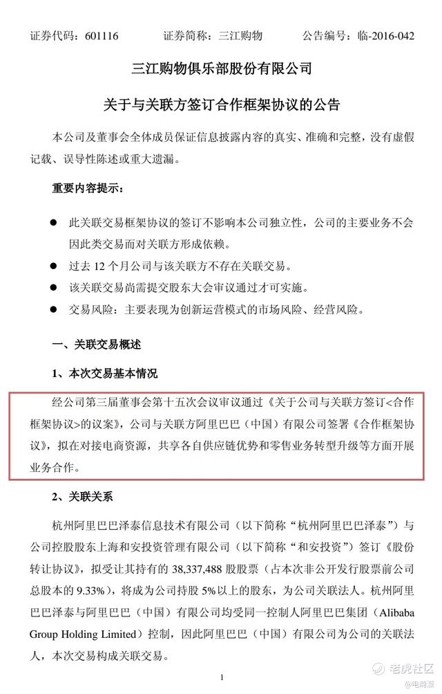 时间回溯至2016年,马云在阿里云栖大会上首次提出“新零售”概念,同年11月,阿里巴巴便宣布入股三江购物,拿下其32%股份,成为其第二大股东。