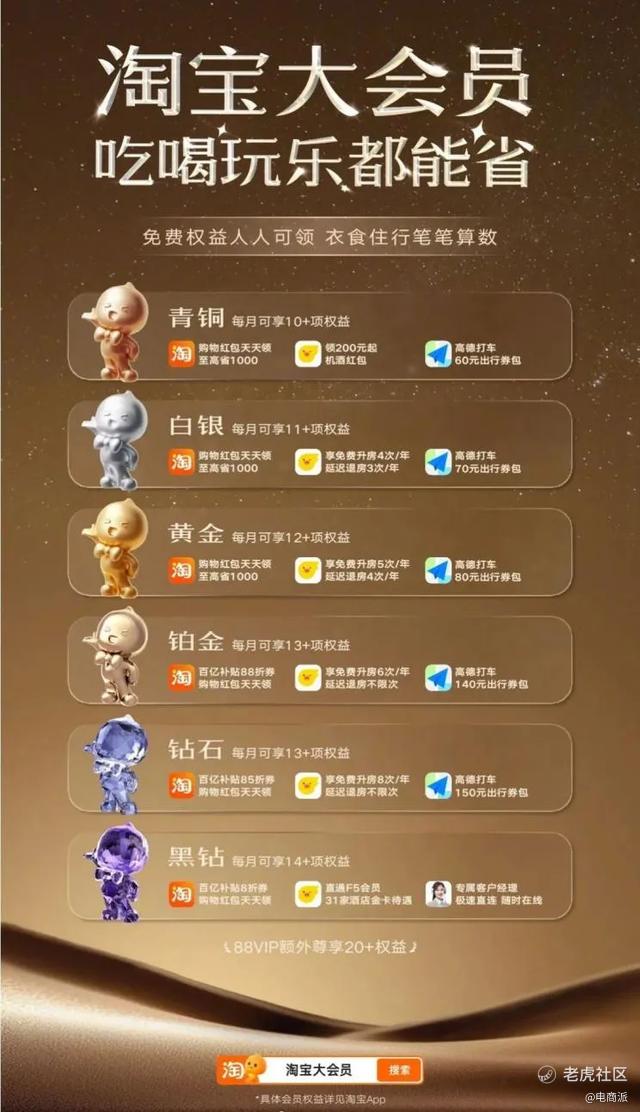 8月,淘宝上线大会员体系,彻底打通饿了么、飞猪、盒马、高德、菜鸟等阿里系全资源,全面承接多场景消费需求。