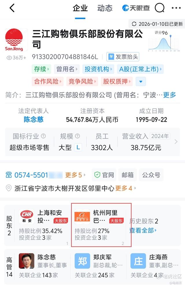 总的来说,从2025年4月拉开减持序幕,到2026年2月正式收官,阿里在短短不到一年的时间里,通过两轮大规模套现,从三江购物累计回笼资金约3.64亿元,持股比例也从32%降至27%。