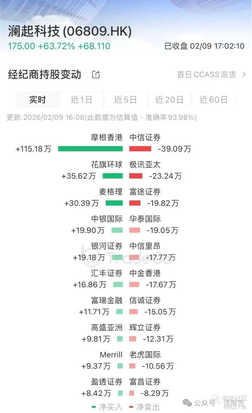 经纪商方面,首日净买入最多的是摩根香港、花旗环球、麦格里,分别净买入115.18万股、35.62万股、30.69万股;净卖出最多是的中信证券、极讯亚太、富途证券,分别净卖出39.09万股、23.24万股、19.82万股。