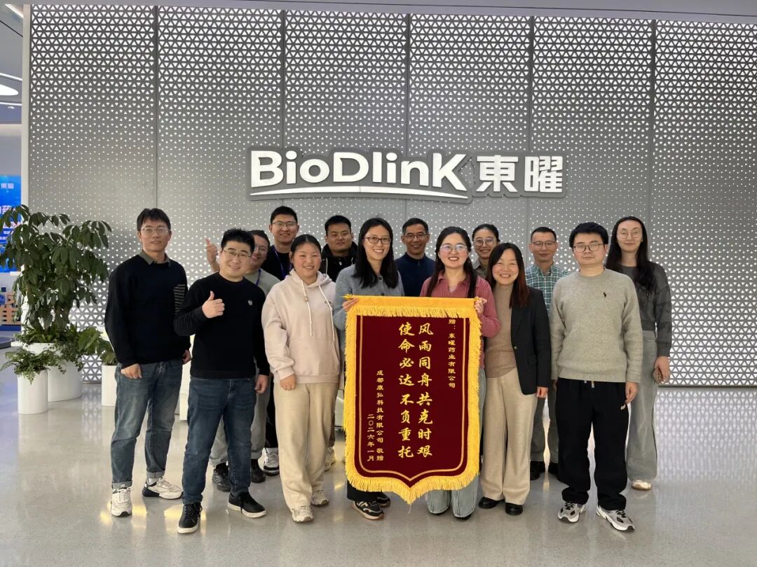 自2023年12月项目启动以来,东曜药业与康弘药业紧密协作,在双载荷ADC的复杂偶联工艺、分析方法开发及制剂研究等环节实现多项关键技术突破。面对分子结构复杂、工艺难度大、时间紧张等多重挑战,双方团队高效协同,最终推动项目顺利完成从开发到IND获批的全过程,较原计划提前1.5个月,展现出以客户需求为中心、使命必达的“软实力”。