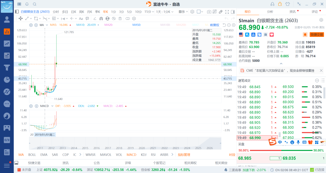 白银从105/115附近布局认沽到75/70附近,接着做反弹到85/90附近,然后认沽到75加空认沽到65平仓,也会黄金差不多了,不过白银是前波动大,后边是黄金波动大罢了,那么未来白银该怎么做呢。