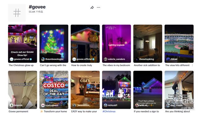 在营销端,随着社交媒体逐渐融入大众的生活当中,Govee也选择拥抱它——在TikTok、YouTube等平台开设官方账号,并且摸透了海外社交平台的玩法,在不同平台使用不同的打法,例如在YouTube发布技术评测,精准触达科技爱好者群体;而在TikTok上则选择推出UGC活动,用互动型的方式激发用户参与热情,并于许多达人进行合作,快速提升品牌的知名度和曝光。