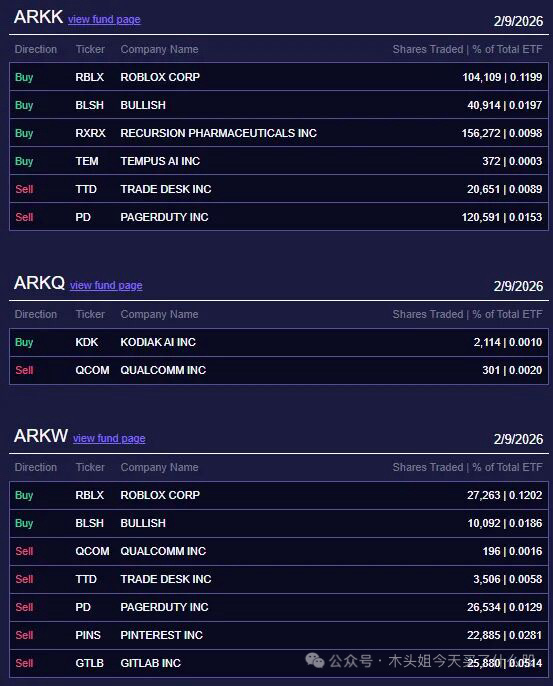 木头姐今天买入2200万美元RBLX、卖出65万美元TTD
