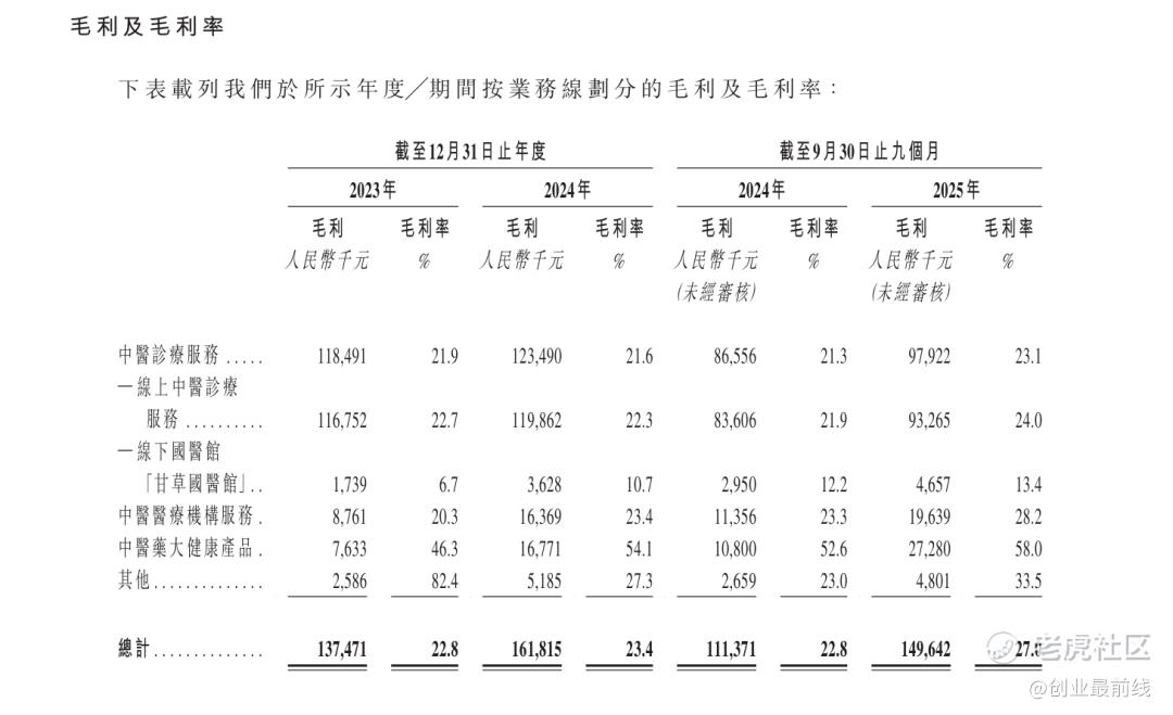 核心原因在于公司成本结构的失衡——线上获客与医生合作成本居高不下,线下药房、国医馆的运营带来了沉重的固定资产与人力成本压力,导致公司毛利率长期维持在25%左右较低水平,而销售、行政及研发开支的持续攀升,进一步挤压了利润空间。