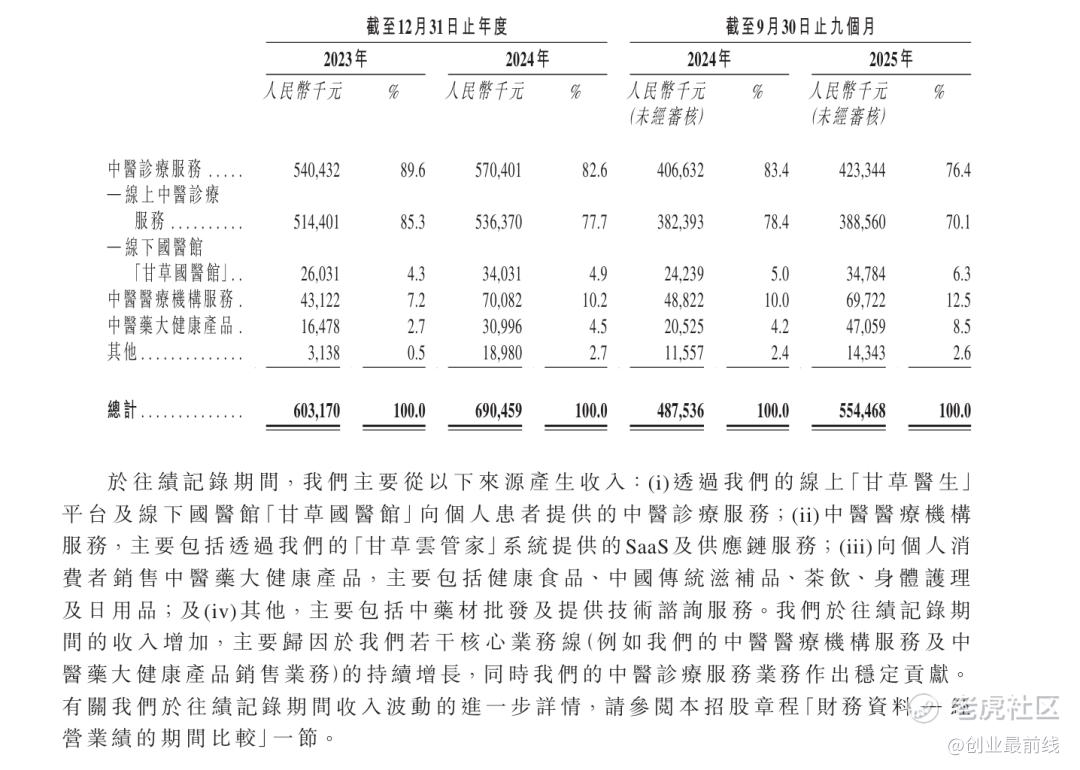 从商业模式来看,甘之草科技正致力打造“平台化整合、数智化驱动、生活化渗透”的数智中医药全产业链服务生态,核心是打通“医—药—患—机构”闭环,靠诊疗、SaaS与供应链、大健康产品三大板块分层变现。