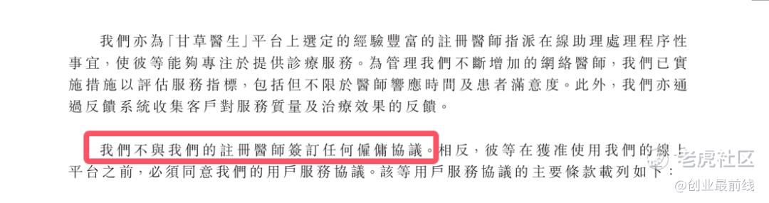 值得注意的是,甘草医生平台上的13万注册医师并非平台雇员,双方不存在雇佣关系,仅以一份用户服务协议作为合作依据。