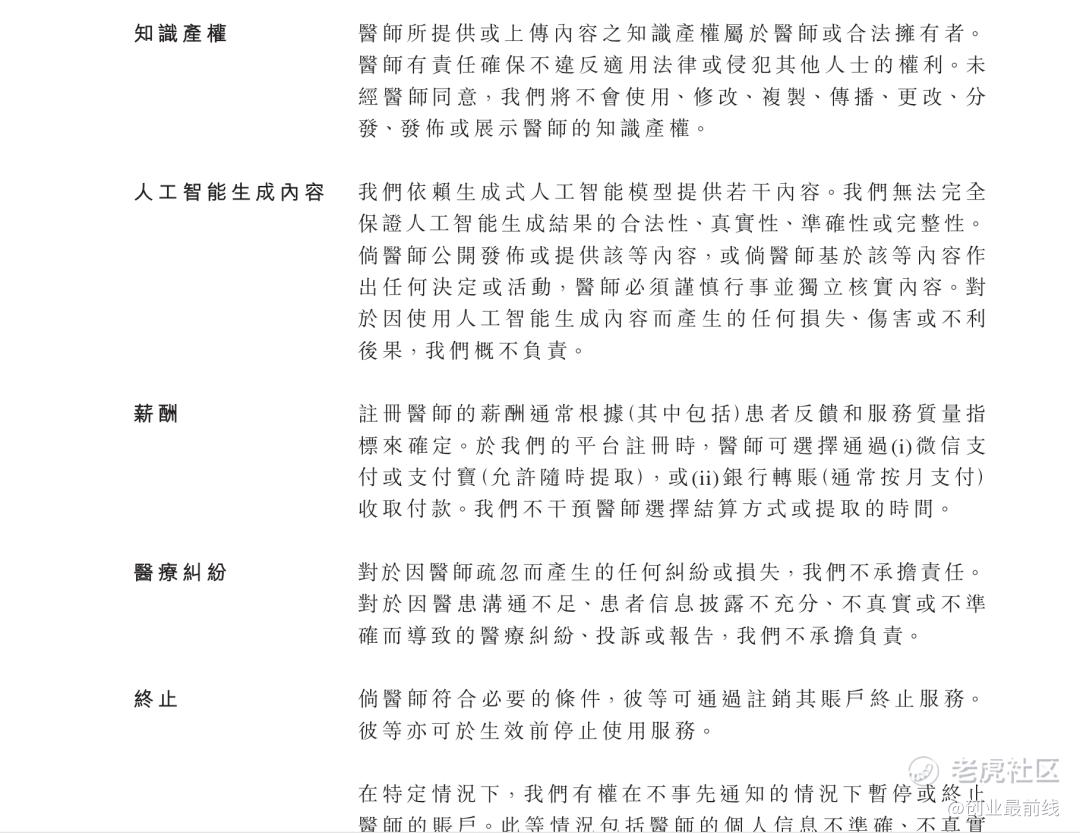 协议中设置了极为宽泛的免责条款:对于医师执业疏忽、医患沟通不畅、患者信息披露瑕疵等引发的各类医疗纠纷、损失或投诉,平台均无需承担责任。