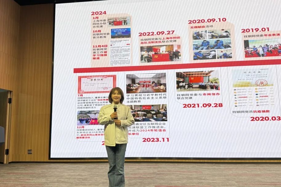 随后,宫颖欣书记进行了找钢网集团党委战斗檄文的宣导,《钢骨铸忠诚,红心向未来》檄文从方向、组织、使命、愿景四个维度,诠释了找钢网集团党委以党建引领产业发展的初心与担当,号召全体党员以红色担当锻造产业铁军,争做产业升级的开拓者、党建创新的先行者、初心使命的践行者。