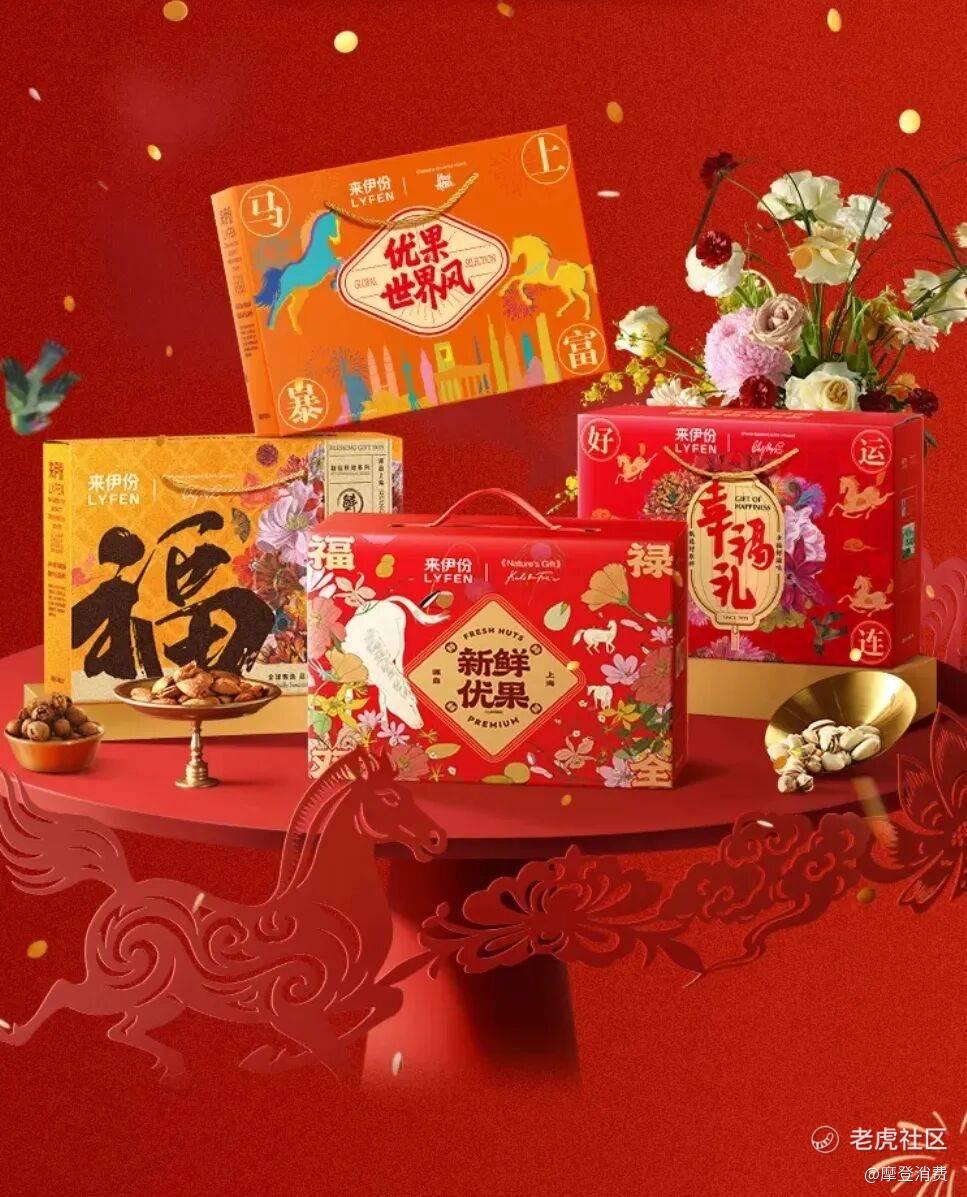 在一家来伊份门店前,一位母亲正仔细挑选,她左手拎着绘有骏马与繁花图案的“新鲜优果”礼盒,右手拿起一包“百年好核”小核桃仁,目光又在“栗刻有”有机甘栗仁上停留片刻。她的购物车里,装着的似乎不止是零食,更像是一份份待寄出的、关于“家”的具象化思念。