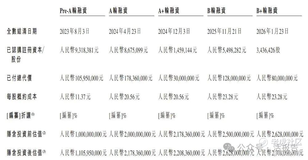 公司上市前经历了5轮融资,在2026年1月的B+轮最新融资中,公司的投后估值约为27.08亿人民币。