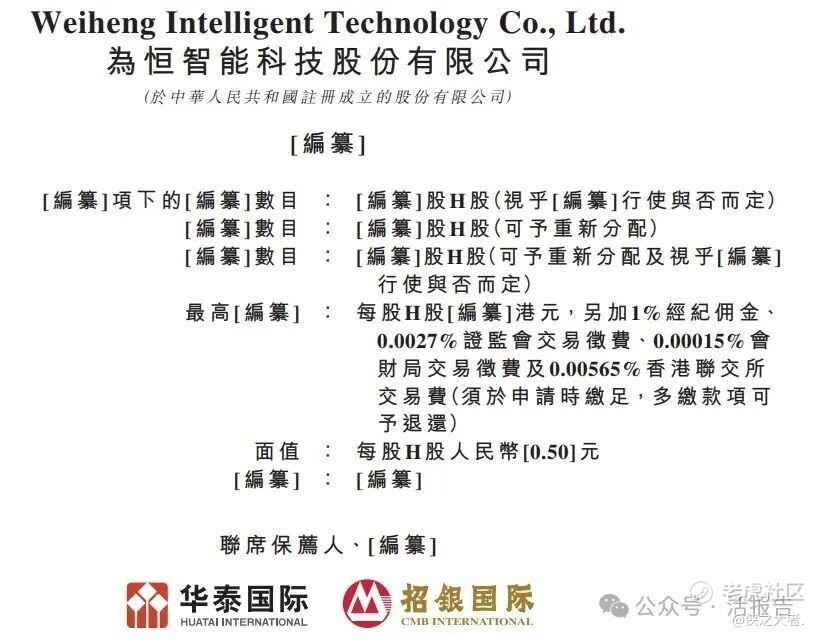 2026年2月9日,为恒智能首次向港交所递交招股书,拟在香港主板上市,联席保荐人为华泰国际和招银国际。
