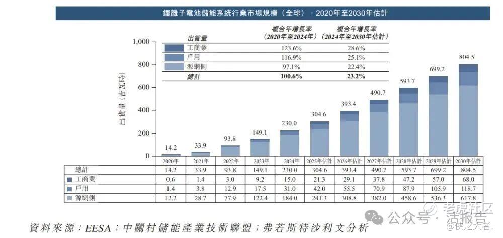 根据弗若斯特沙利文(Frost&Sullivan)的报告,2020年至2024年,工商业锂离子电池储能系统、户用锂离子电池储能系统及源网侧锂离子电池储能系统的市场规模(按出货量计)分别按复合年增长率123.6%、116.9%及97.1%增长。展望将来,工商业锂离子电池储能系统、户用锂离子电池储能系统及源网侧锂离子电池储能系统的市场规模(按出货量计)预期于2024年至2030年将分别按复合年增长率28.6%、25.1%及22.4%增长。