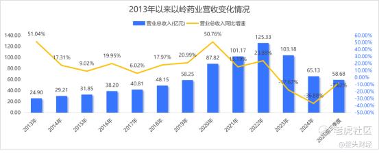 自2011年登陆A股以来,以岭药业就一直是业绩稳健增长的中药龙头股。自2013年之后十年,其营业收入从未有过负增长。