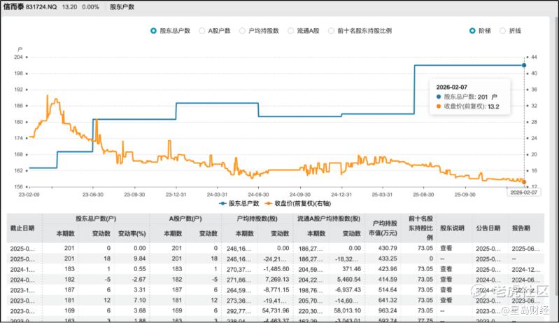 Wind数据显示,截至2026年2月11日,信而泰股东总户数为201户。