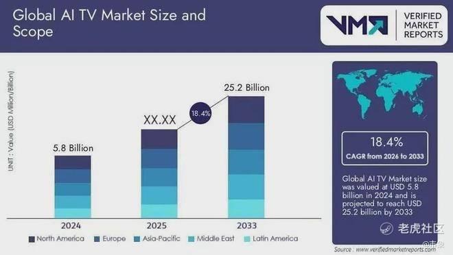 尽管包括TCL在内的业内玩家都在试图通过智能交互升级,或者直接把新型显示技术与AI大模型相结合,打造AI电视来增强增长动力。按有关机构预测,AI电视这个赛道的确有一定空间,从2024年到2030年复合年增长率也将达19.6%。