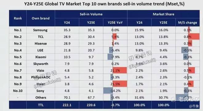 同样,海信全球的出货量差距会被进一步拉大,国内第一的位置也岌岌可危。