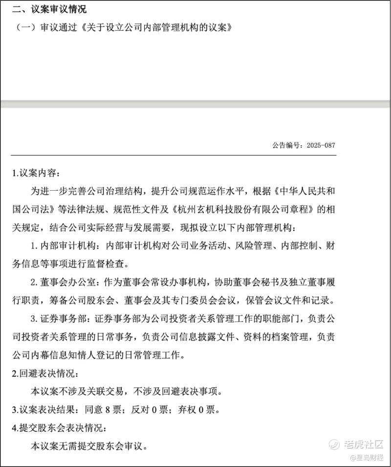 2025年12月24日,玄机科技召开第二届董事会第十四次会议立即针对性整改,审议通过修订后的《杭州玄机科技股份有限公司总经理工作细则》及《杭州玄机科技股份有限公司总经理工作细则(北交所上市后适用)》。